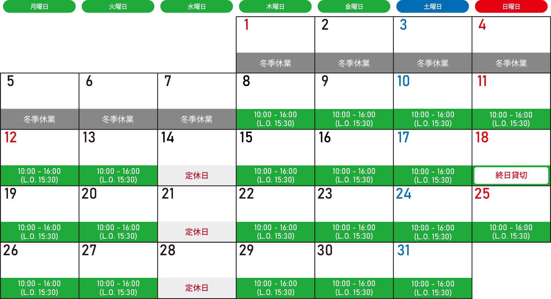 1月の営業日