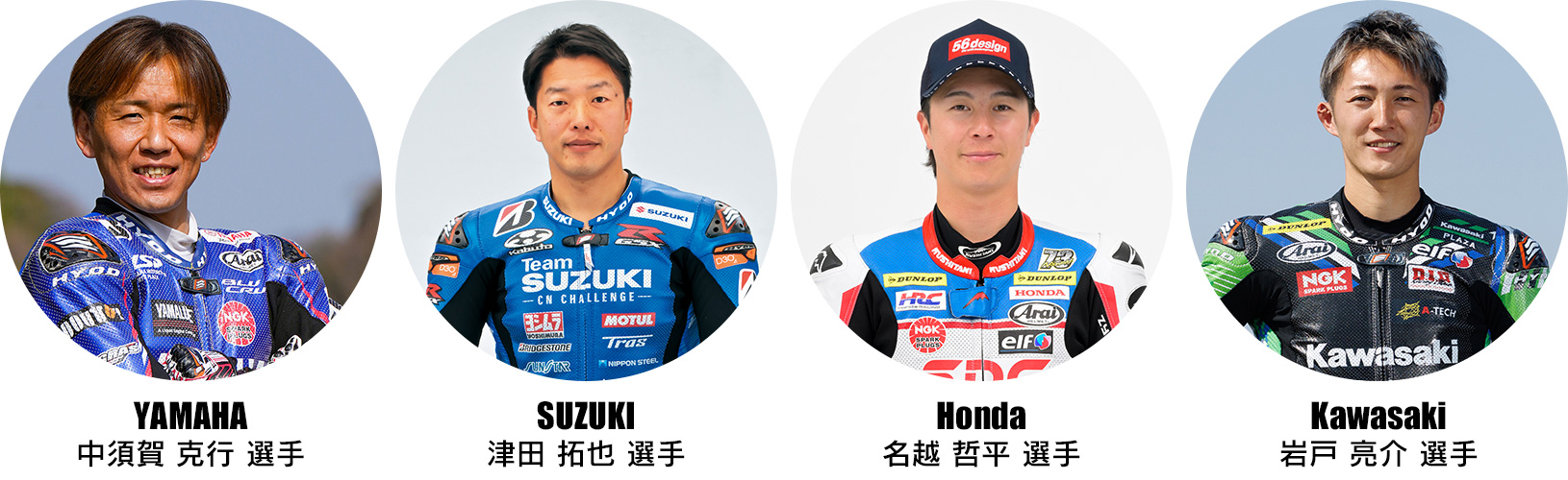 全日本ロードレース選手権にて、バイクでご来場のお客様を対象に「SUGOスーパーバイク・メモリアルパレードラン」を実施致します。 パレードランは、バイクでご来場のお客様で前売観戦券・当日券をお持ちであれば、どなたでも参加可能! さらに、パレードラン特別ゲストとして有力ライダーが先導役として登場予定!以下のトップライダーの皆さんが先導していただけます! |