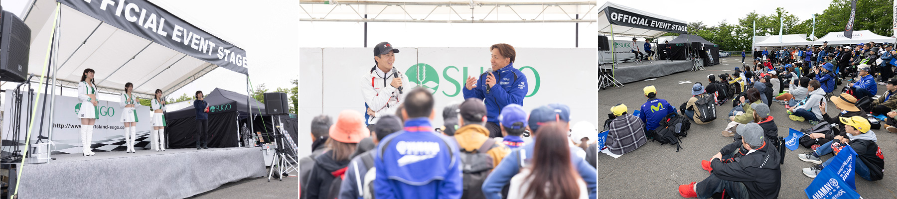SUGOオフィシャルナビゲーターや大会参加の各チームのレースクイーンなどが出演する「スポンサーPRステージ」と、ブース出展企業が協賛した賞品を賭けて行われるジャンケン大会などイベント多数。ライダートークショーも予定しています。MCにバイク声優でおなじみの難波祐香氏を迎えて、様々なイベントの進行と参加するライダーのトークショーにご期待ください。 |